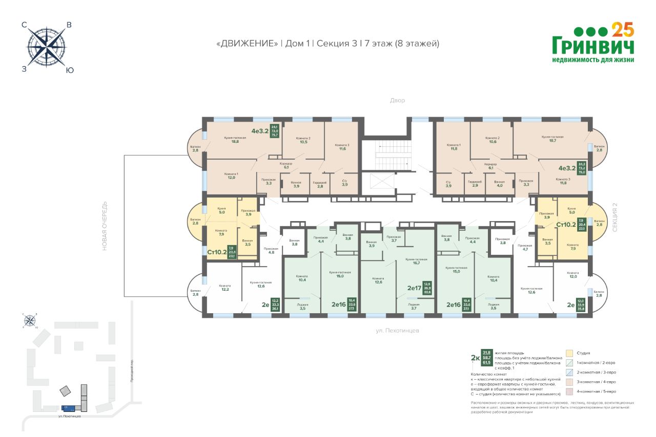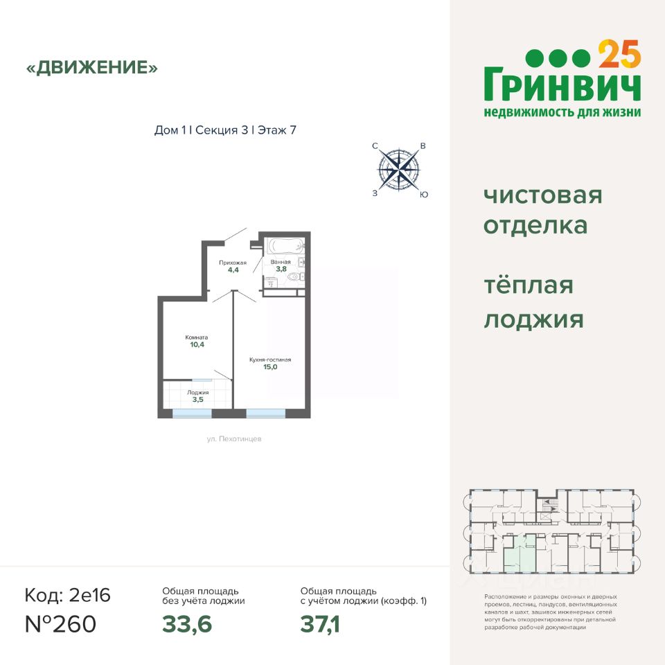 Продается квартира С ОТДЕЛКОЙ в современном жилом квартале "Движение" новый жилой комплекс комфорт-класса в развивающейся части Новой Сортировки, расположенный на пересечении улицы Пехотинцев и переулка Проходной. В 1 минуте от супермаркета, рядом образовательные и медицинские учреждения, парки. 20 минут до центра города. В продаже 1 дом 1 очереди (три секции от 8 до 12 этажей). Срок сдачи 4 квартал 2025 года Доступна ипотека 14% для всех! Преимущества квартир: - Есть квартиры с теплыми лоджиями; - Эргономичная и функциональная планировка; - Качественная чистовая отделка: входные двери, ламинат, обои под покраску, установлена сантехника; - Горизонтальная разводка систем отопления свободные стены; - Счетчики на э/э, воду и тепло ежемесячная экономия на коммунальных платежах; - Сделаны входы для слаботочных сетей (интернет, телефон, цифровое телевидение). Преимущества дома: - Кулуарность низкоэтажных секций; - Много окон, света и воздуха; - Детский сад со своей территорией внутри проекта; - Свой приватный зеленый двор с мультивозрастными площадками; - Ритейл на первом этаже дома; - Образовательные, медицинские и спортивные учреждения в пешей доступности; - Развитая инфраструктура рядом — магазины, пункты выдачи и пр.; - 6 минут до семейного парка "Таганская слобода" и до парка-стадиона "Локомотив" на автомобиле; - 20 минут до центра города на автомобиле.