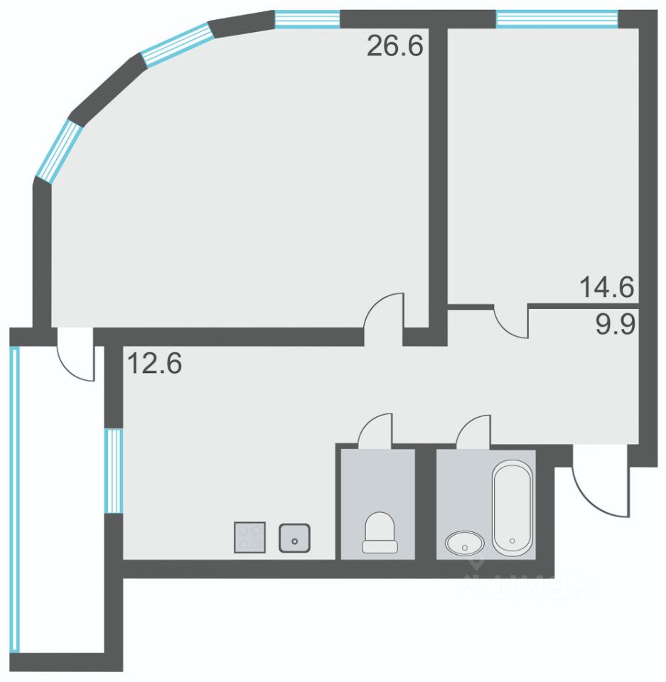 Удобная планировка: 2 изолированные комнаты + кухня 12,5 м²;
