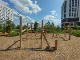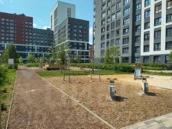 Сделан лимфодренаж по всему микрорайону, что полностью решает проблему луж и наледи на дорогах. Все открытые участки грунта засыпаны, везде уложен рулонный газон. Вход в подъезд располагается на уровне земли, подъезды сквозные, в подъезде есть место для колясок, велосипедов, снегокатов и бубликов, во дворе индивидуальный ландшафтный дизайн, игровая, спортивная площадки с травмобезопасным покрытием, зона с беседками и столиками.
