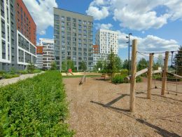 В самом районе в шаговой доступности находятся парк, детский сад, школа, физкультурно-оздоровительный комплекс с 2 ледовыми аренами, бассейн. Построены 3 новых детских сада, ледовая арена Автомобилиста, Много продуктовых магазинов, аптек, кафе. Есть фитнес-залы, зоомагазины, ветеринарная клиника, школа развития для детей, строительные магазины. В шаговой доступности аутлет BRANDS STORIES. Напротив дома - парк с холмами и велодорожками, площадками для выгула и дрессировки собак, есть специальная оборудованная площадка для игры в футбол и зона воркаута. От дома до школы, садика и ледовой арены 5 мин пешком. Остановка рядом с домом, теплый остановочный комплекс.