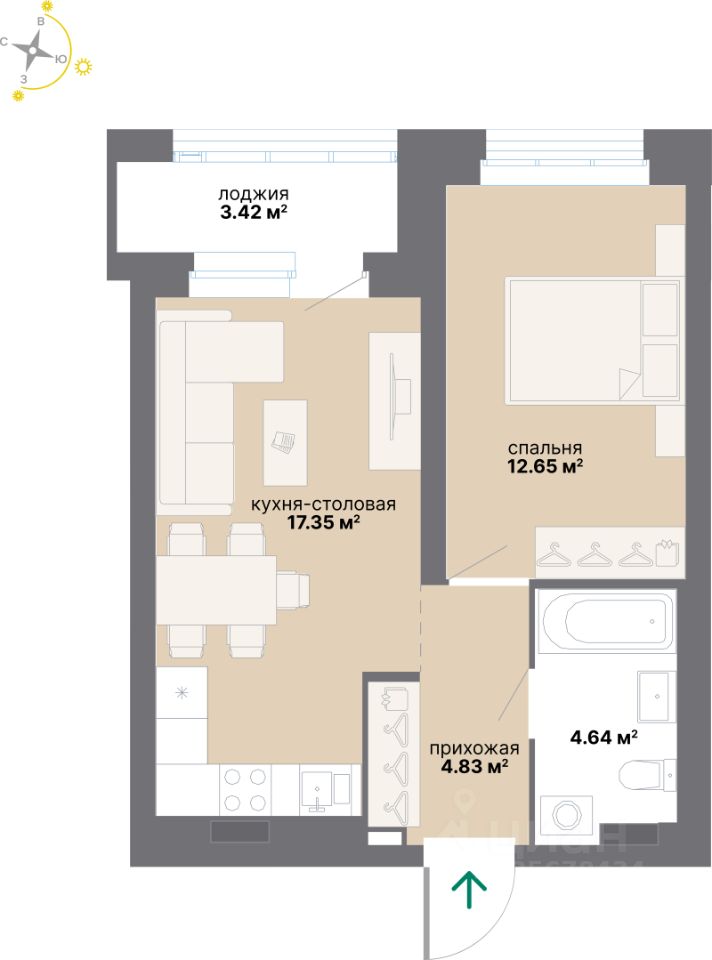 Квартира 419 в подъезде 1.