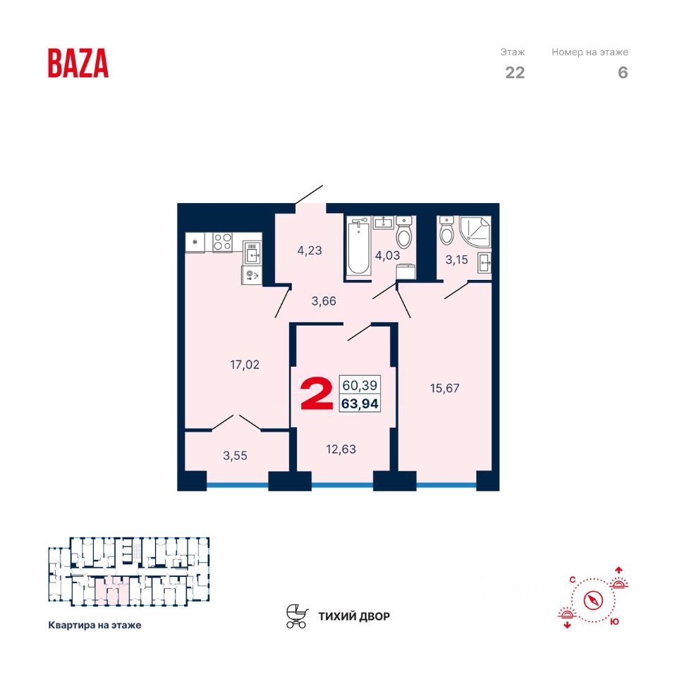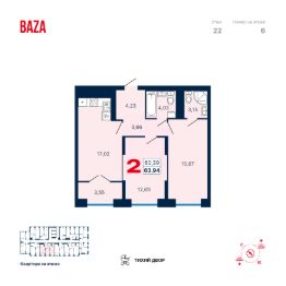 Продаётся квартира в ЖК "Тёплые кварталы". 2-комнатная квартира, 63,94 м², 532, Очередь 3, дом 2. Стоимость указана с учетом чистовой отделки.
