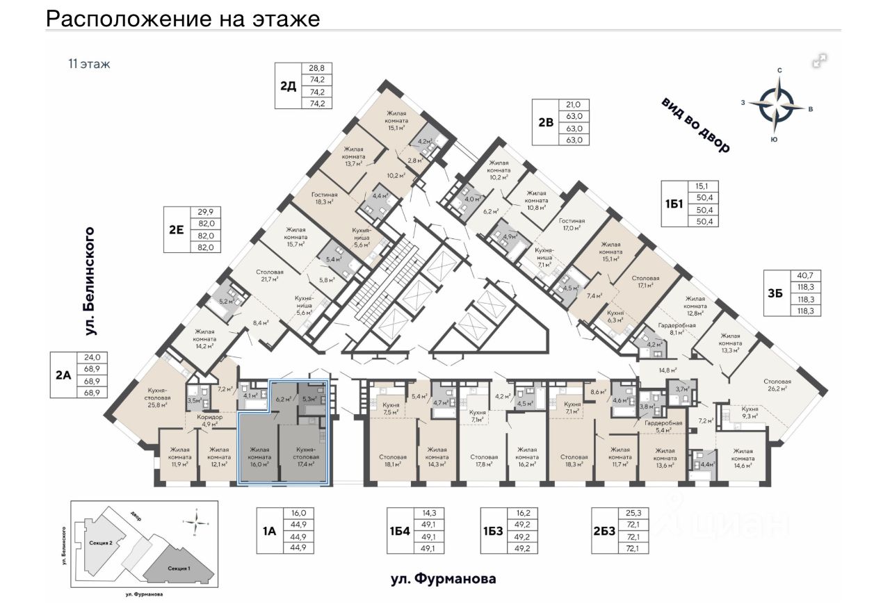 Квартира расположена на 11 этаже, с шикарным видом на юг! .
