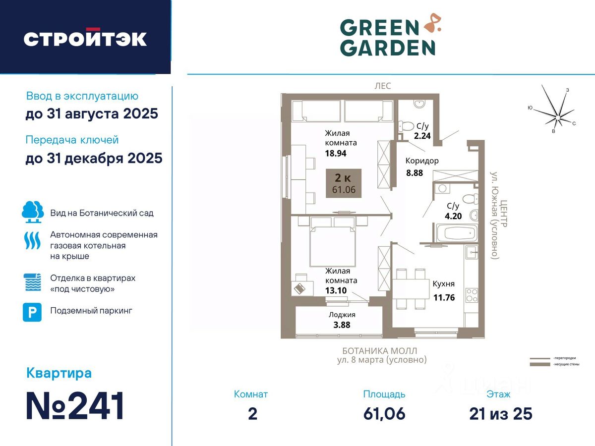 Жилой комплекс Green Garden (Грин Гарден) расположен в микрорайоне Ботанический, в сердце Ботанического сада — по адресу 8 марта, 204е. Дом сдан. Продажа квартир осуществляется по договору купли-продажи от застройщика.