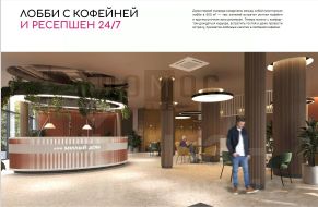 Проект спроектирован и наполнен таким образом, чтобы жители могли получить все самые необходимые удобства одним нажатием кнопки лифта: от рабочего места с панорамным видом на город и кофейни на первом этаже до автомойки на подземном паркинге.