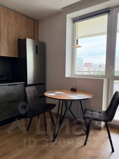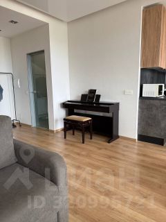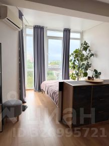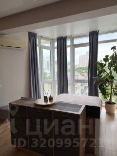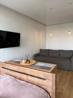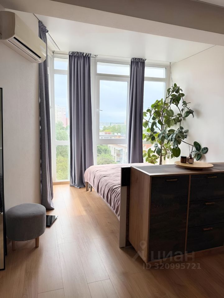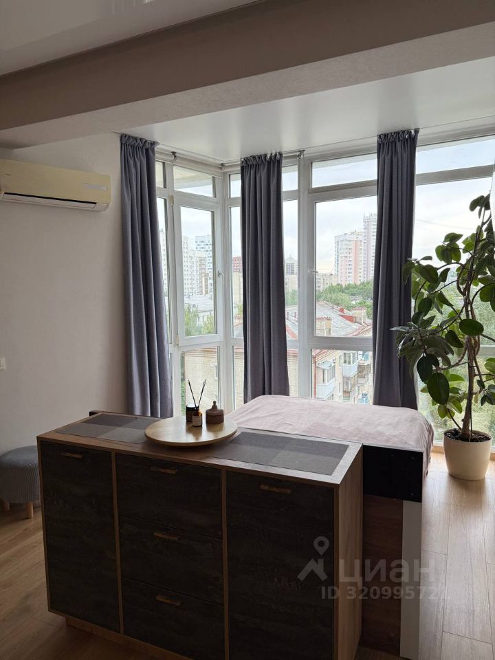 Дизайнерский ремонт. Панорамные окна вдоль стены заливают комнату солнцем, а вечером открывается красивый вид на город. Вся мебель остаётся — от уютной кровати и мягкого дивана до удобного рабочего стола и стильного обеденного уголка — в отличном состоянии, использовались минимально.