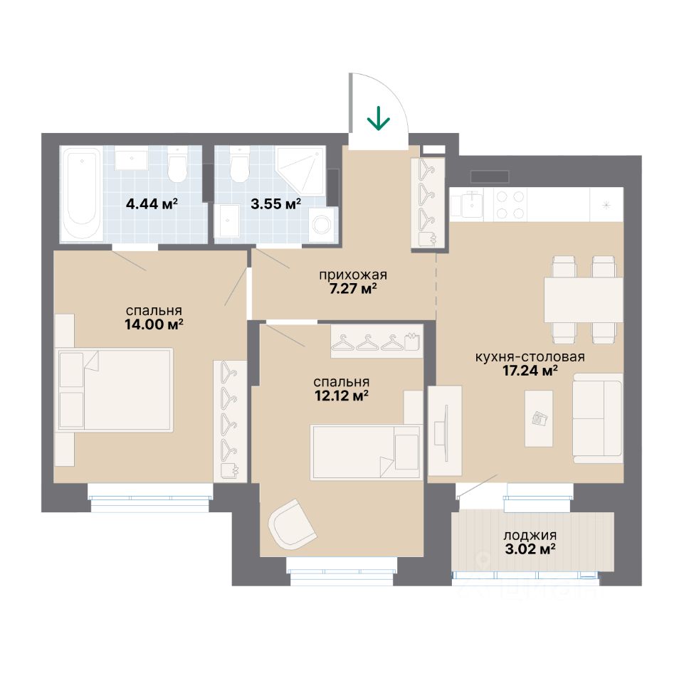 Квартира 444 в подъезде 1.