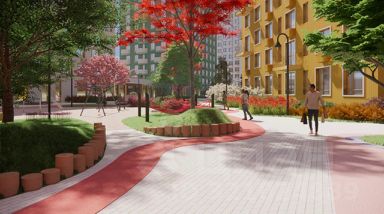 - Зеленый прогулочный бульвар. По центру двора проходит большая зелёная аллея, которая соединяет все игровые площадки и зоны отдыха.