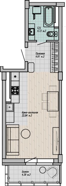 Продается 1-комн. квартира, 33,75 м²