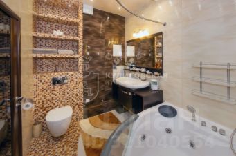 Ремонт выполнен по дизайн-проекту с использованием качественных материалов: стены отделаны бамбуком и камнем, в кухонной зоне полы из керамогранита с подогревом, в санузлах — плитка и мозаика. Светильники и люстры создают ощущение мягкого сияния в каждом уголке квартиры.