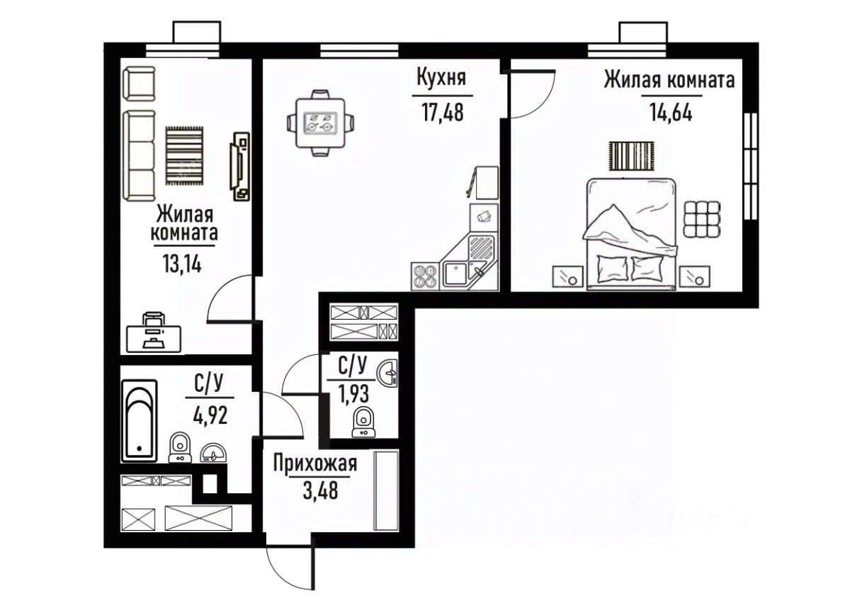 2К КВАРТИРА 58,49 КВ. М. НА 12 ЭТ. В ЖК РИВЕР ПАРК