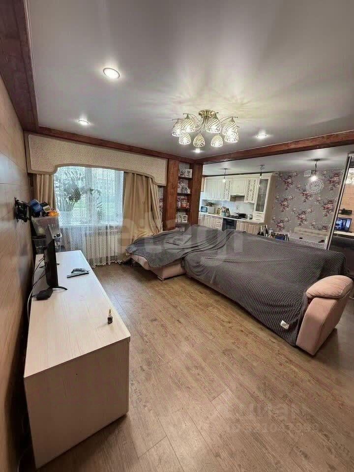 Квартира расположена на первом этаже пятиэтажного блочного дома по улице Металлургов, 12. Объект отличается уникальной двухуровневой планировкой общей площадью 86.3 м², что является редкостью для типовой застройки. На первом уровне расположены просторная кухня площадью 16 м², изолированная гостиная, спальня и совмещенный санузел с душевой кабиной. Второй уровень включает две изолированные спальни, одна из которых имеет выход на утепленную лоджию, и второй санузел с полноценной ванной. В квартире выполнен качественный дизайнерский ремонт, установлены новые инженерные коммуникации. Окна выходят на солнечную сторону, высота потолков составляет 2.6 метра. Полностью укомплектована всей необходимой мебелью и техникой: кухонным гарнитуром, встроенной техникой, включая посудомоечную и стиральную машины, системами хранения одежды и спальными местами.