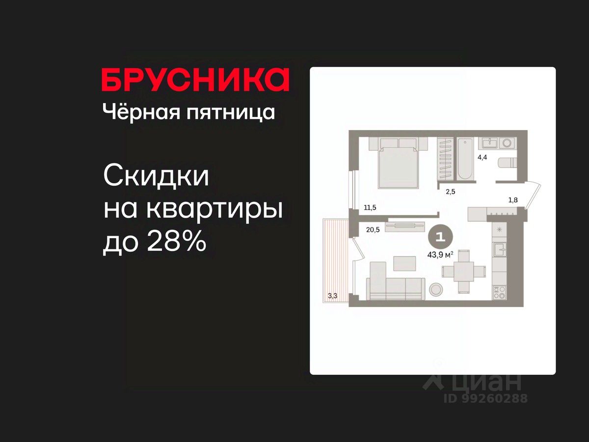Торопитесь забронировать, пока действует скидка! Период предложения ограничен! Стоимость квартиры указана со скидкой, ваша экономия составит 530,000 RUB. Звоните, мы вам все подробно расскажем!