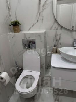 Совмещённый санузел оформлен в современном стиле.