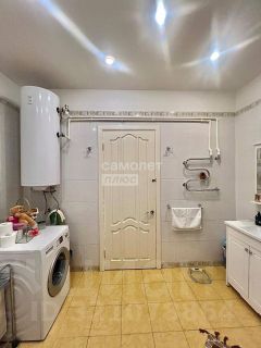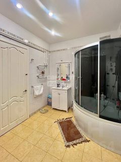 - Санузел оснащен теплой системой пола. Бойлер объемом 150 литров, работающий по двухконтурной схеме, гарантирует постоянную подачу горячей. Данное решение позволит существенно экономить электроэнергию и навсегда забыть о проблемах с отключением водоснабжения. Большой душевой бокс оборудован функцией гидромассажа.