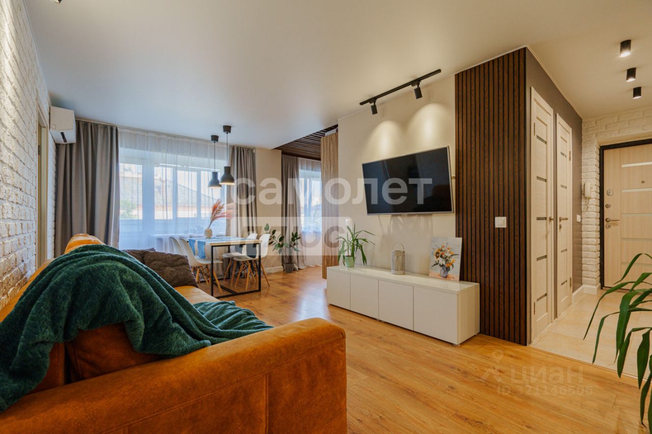 В квартире выполнен качественный ремонт в современном дизайне, установлена новая бытовая техника, теплый пол, кондиционер.