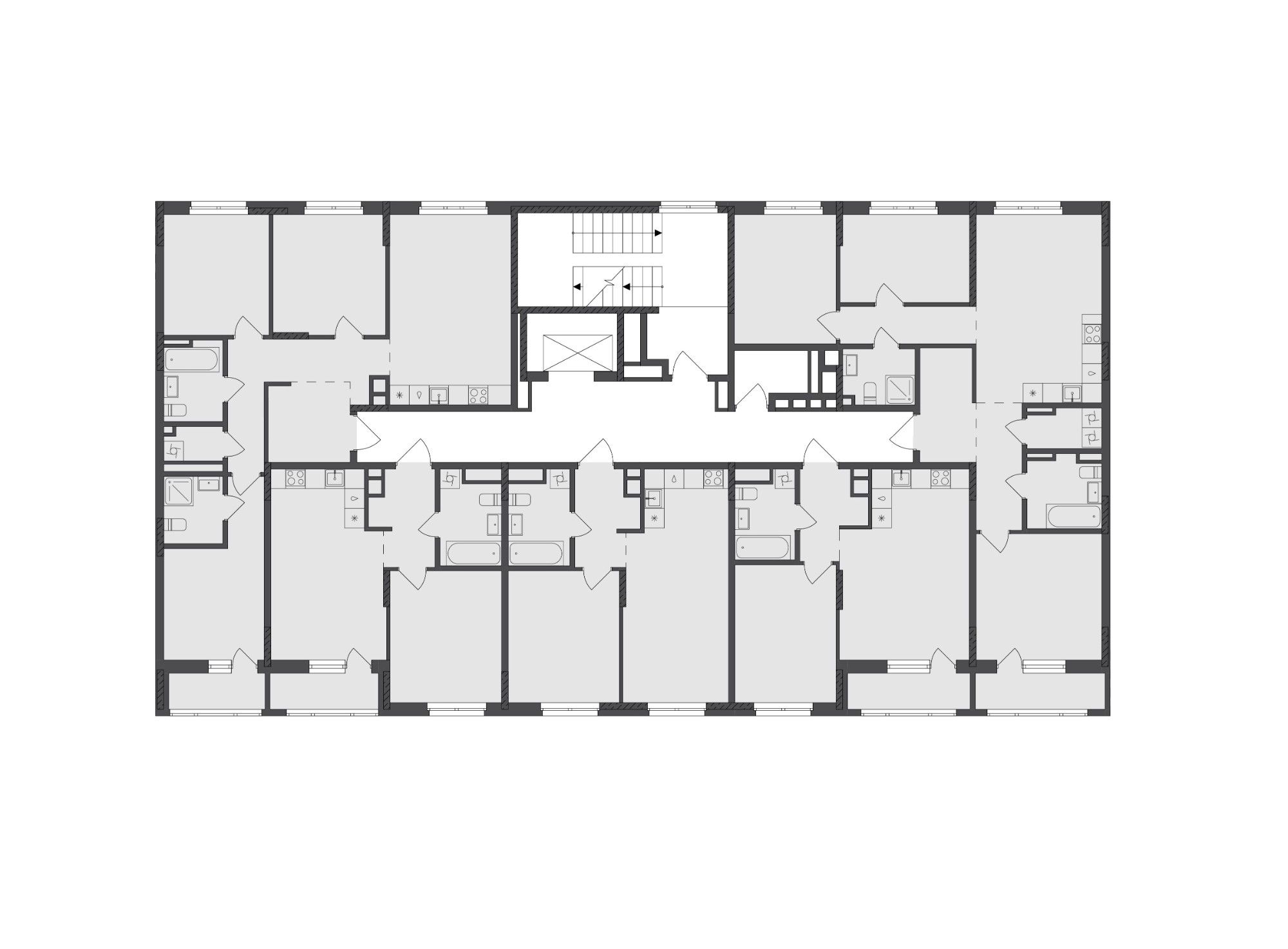 Два санузла: 4,1 м² с ванной для расслабляющих вечеров и 3,6 м² с возможностью установки душевой кабины для быстрого начала дня. Удобное решение для комфортного ритма жизни