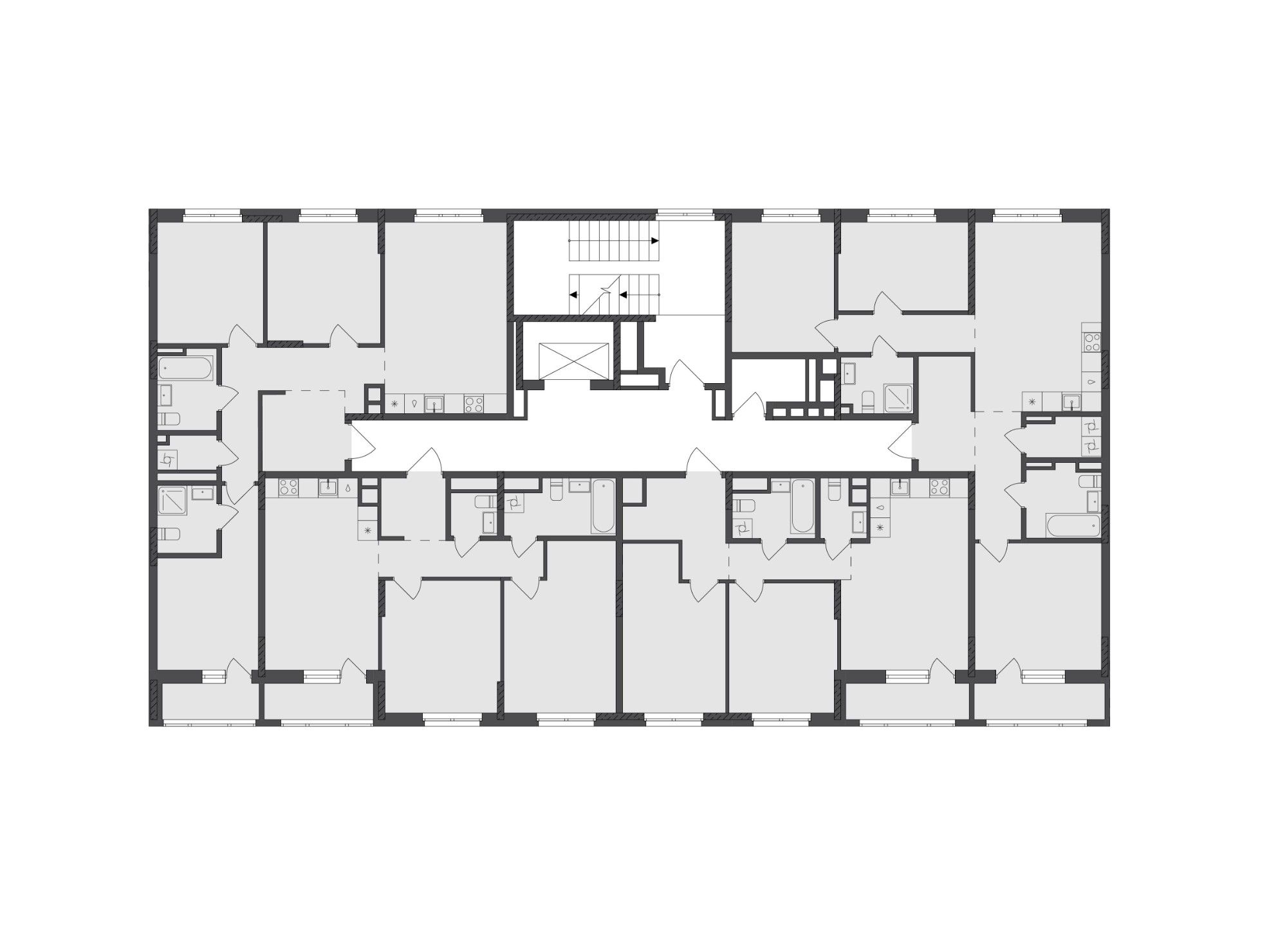 Два санузла: 4,1 м² с ванной для расслабляющих вечеров и 3,6 м² с возможностью установки душевой кабины для быстрого начала дня. Удобное решение для комфортного ритма жизни