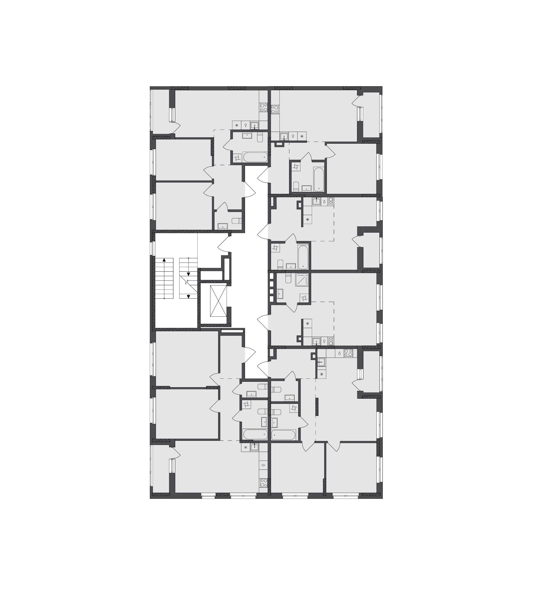 Санузел 4,3 м², оборудованный местом под душевую кабину и стиральную машину, обеспечивает рациональные решения для ежедневного комфорта
