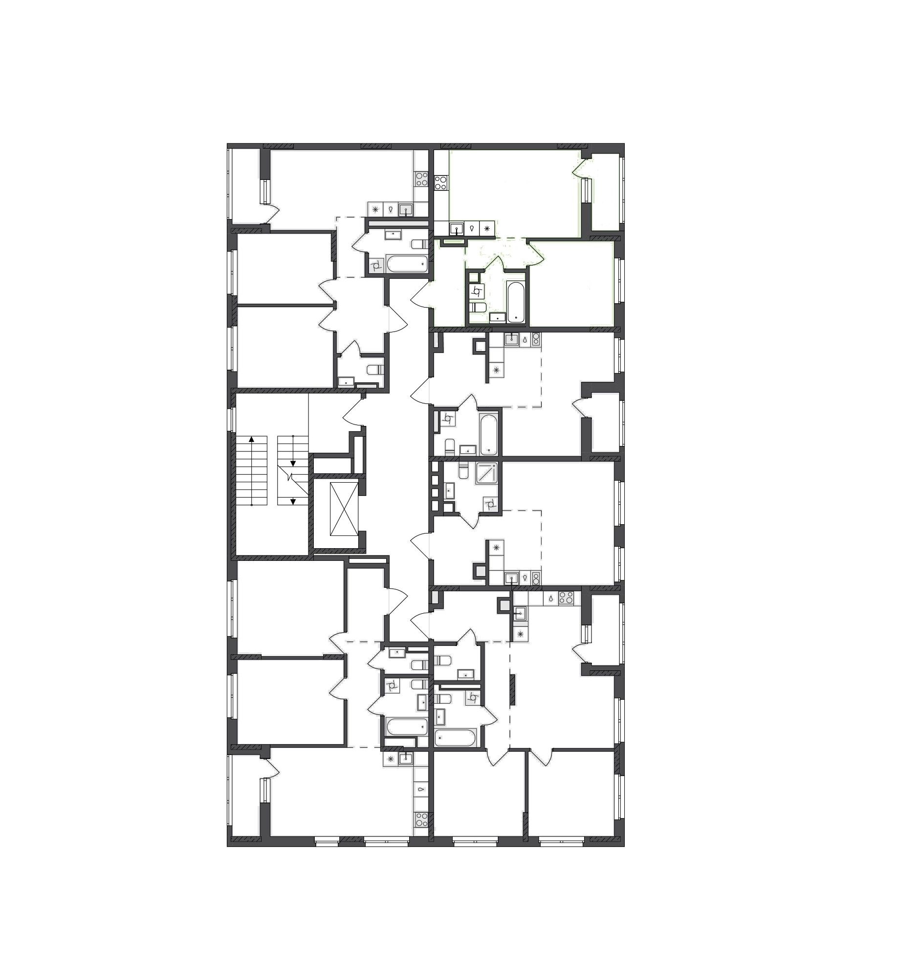 Санузел 4,1 м², оборудованный местом под душевую кабину и стиральную машину, обеспечивает рациональные решения для ежедневного комфорта