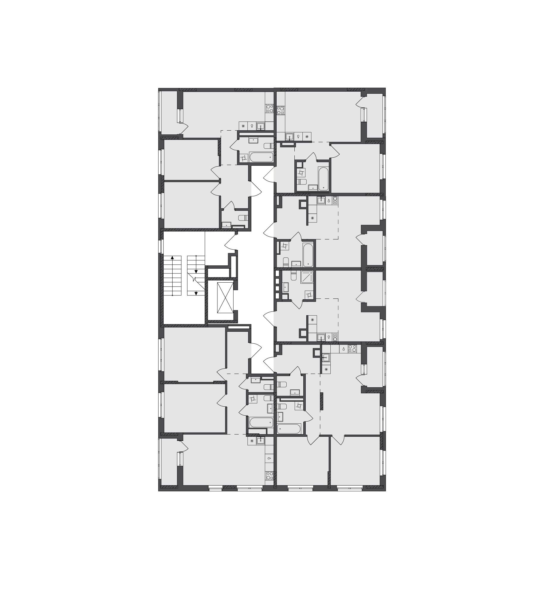 Зона кухни 6,1 м² объединена с гостиной, формируя открытое пространство, в котором легко готовить любимые блюда и наслаждаться общением с друзьями