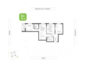 Коридор 5,6 м² связывает все комнаты, обеспечивая удобную навигацию и создавая ощущение целостности пространства