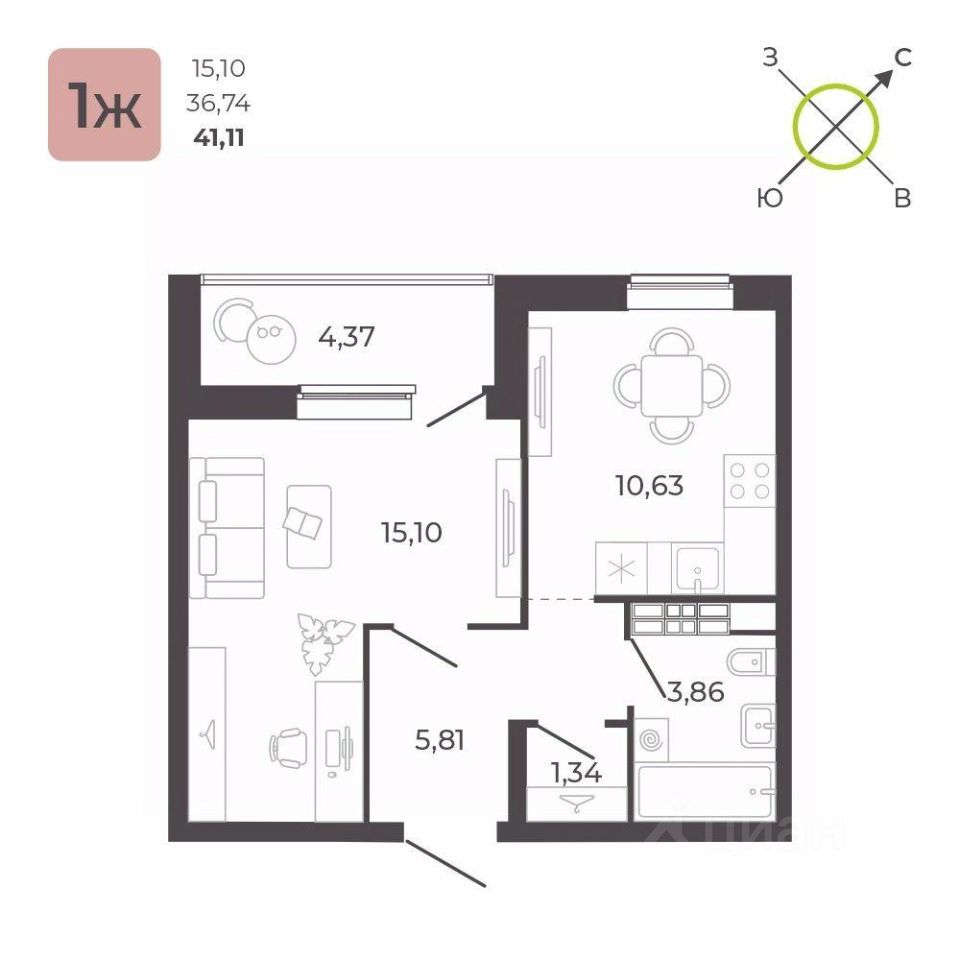 Продаётся 1-комнатная квартира в сданном доме (Академика Ландау, 34 (Блок 12.9)), срок сдачи: III-кв. 2025, общей площадью 41.11 кв.м., на 20 этаже. Новый жилой комплекс "по ул. Академика Ландау" от застройщика "ЭнергоКомплекс" расположен по адресу: г. Екатеринбург, улица Академика Ландау.