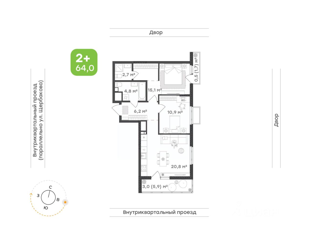 Мастер-спальня— уединённое пространство с удобным местом для хранения и личным санузлом
