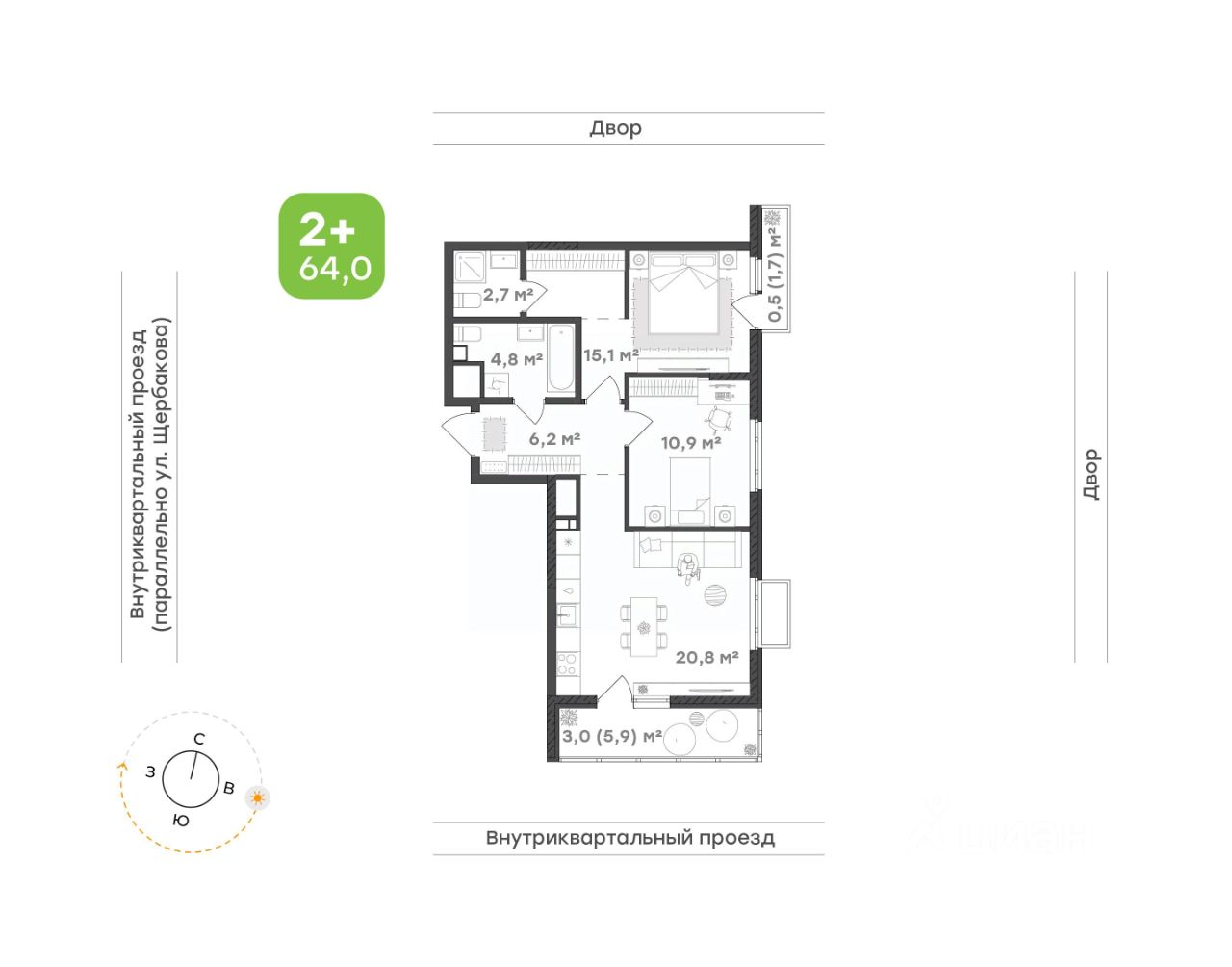 Мастер-спальня— уединённое пространство с удобным местом для хранения и личным санузлом