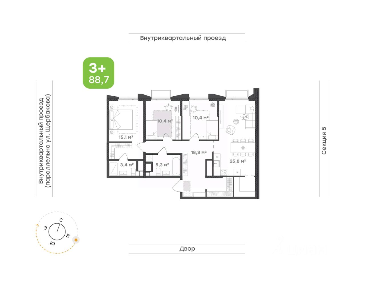 Мастер-спальня — уединённая зона комфорта. В комнате предусмотрено место под систему хранения и личный санузел с возможностью установки душевой кабины — комбинация, создающая атмосферу уюта и свободы