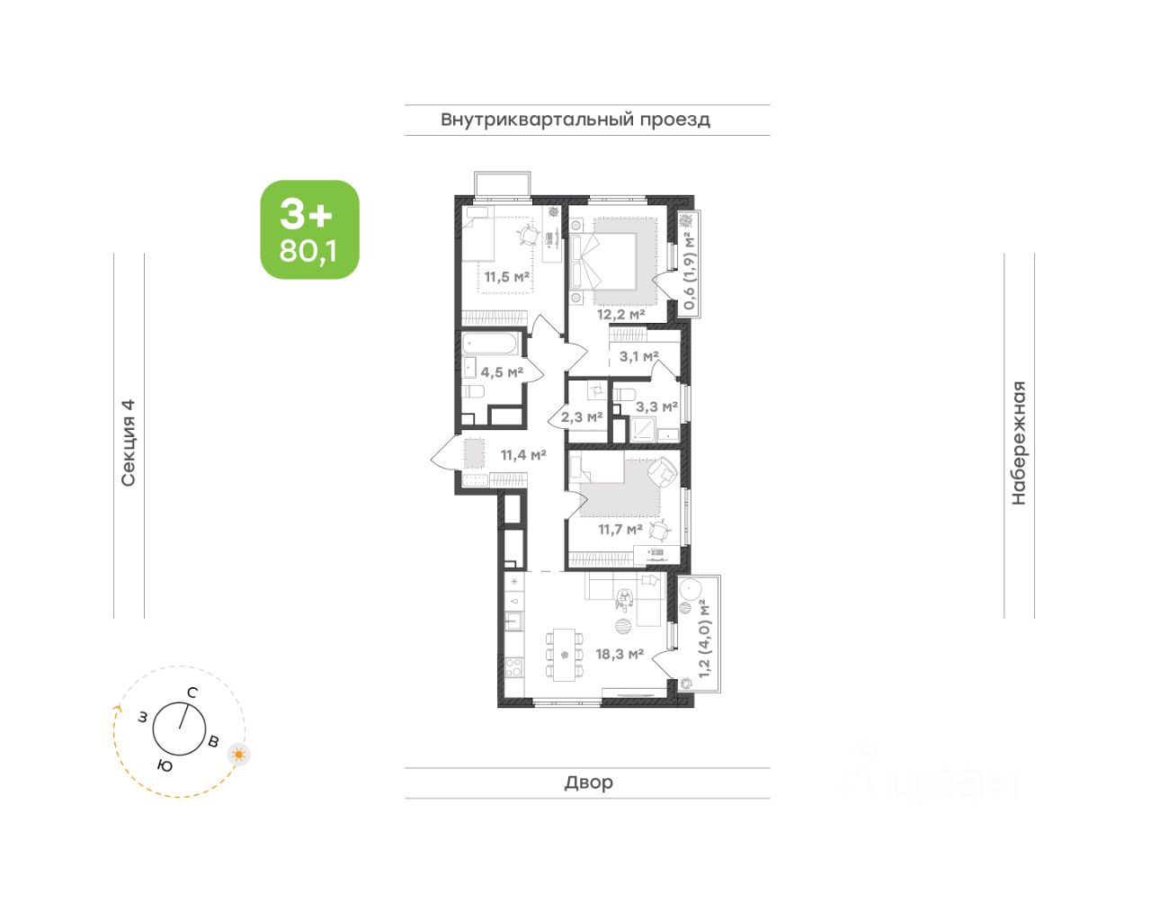 Просторная, светлая квартира, где каждый член семьи найдёт себе место