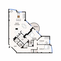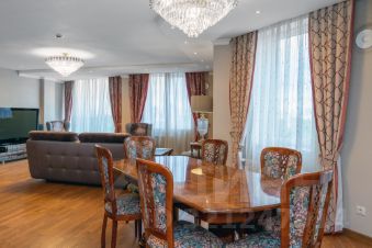 Удачная планировка включает в себя две спальни, кабинет, просторную кухню-гостиную с выходом на панорамную лоджию, две гардеробные и три санузла. У каждого члена семьи будет своё личное пространство. Гардеробные комнаты позволяют отказаться от громоздких шкафов и поддерживать порядок без усилий. Планировка продумана до мелочей: кухня зонирована от гостиной, но при этом остаётся открытой: удобно для семейных ужинов, и для приёма гостей.