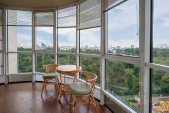 Изюминка квартиры — шикарный вид на хвойный парк: зелень, свежий воздух и никаких соседских окон напротив.