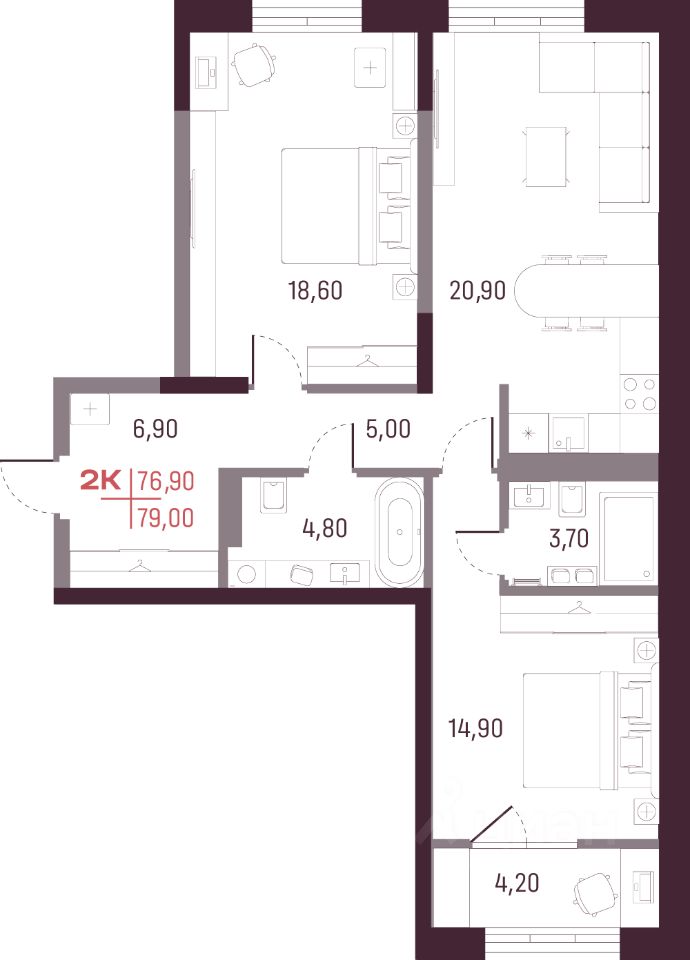 • Продуманные планировки с мастер-спальнями, гардеробными и даже ванными комнатами с окном.