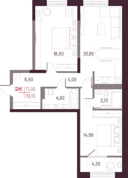Евро 3-х комнатная квартира с большой кухней гостиной, 2 -я просторными спальнями, вместительной прихожей и теплой лоджией.
