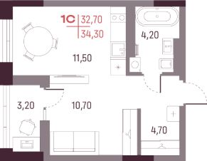 Студия (смарт 1к квартира) правильной квадратной формы, есть выход на лоджию.