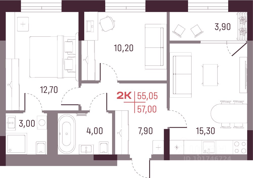 Компактная евро 3-х комнатная квартира. Большая кухня-гостиная с выходом на теплую лоджию. Детская и мастер спальня родителей с большой гардеробной.
