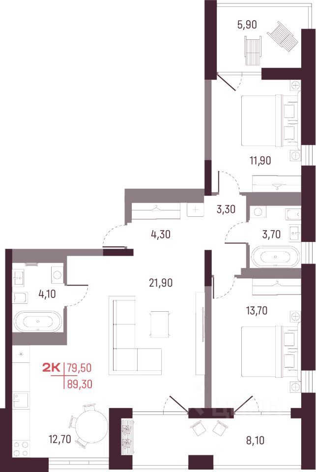 • Продуманные планировки с мастер-спальнями, гардеробными и даже ванными комнатами с окном.