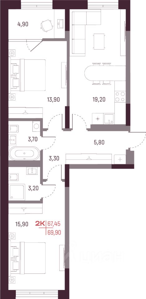 • Продуманные планировки с мастер-спальнями, гардеробными и даже ванными комнатами с окном.