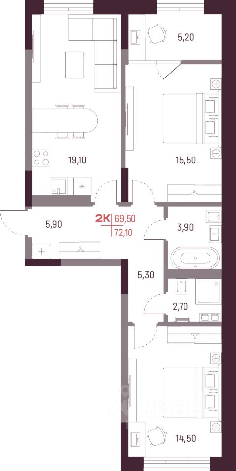 Общая площадь69,5 м²