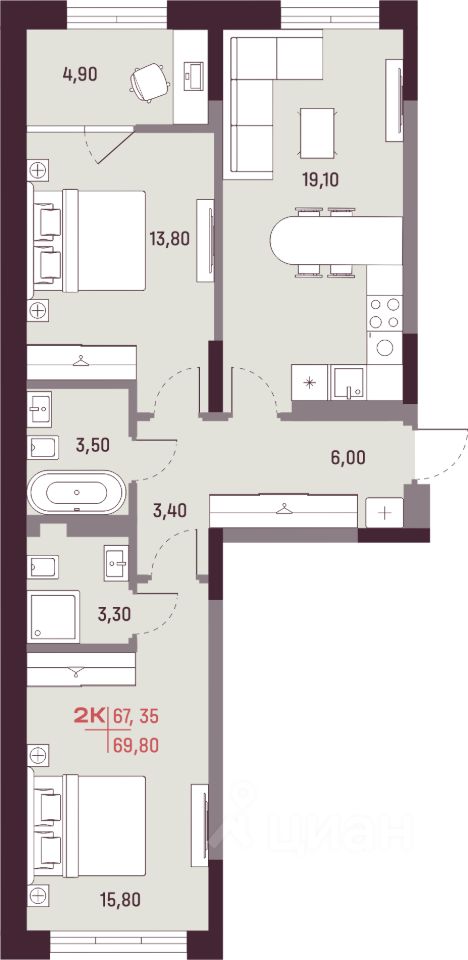 • Продуманные планировки с мастер-спальнями, гардеробными и даже ванными комнатами с окном.