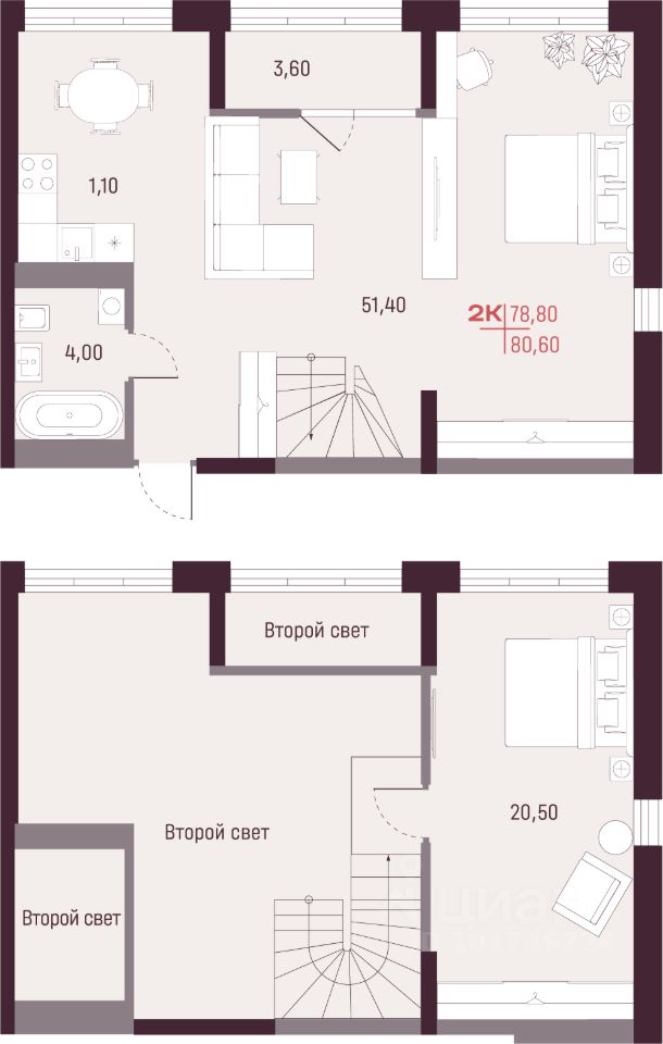 Двухуровневая квартира на 16 этаже с дизайнерской отделкой. Просторная гостиная. Высота потолков 5.75 метров.