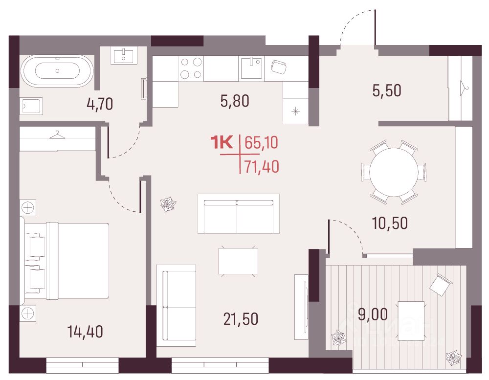 Просторная евро 2-х комнатная квартира. Большая кухня-гостиная с теплой лоджией.