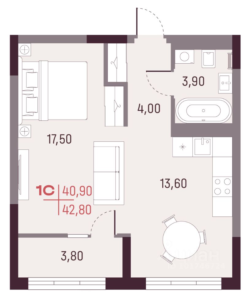 Студия (смарт 1к квартира) правильной квадратной формы, есть выход на лоджию.