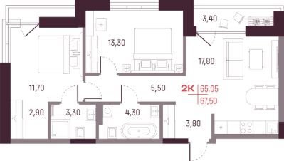• Продуманные планировки с мастер-спальнями, гардеробными и даже ванными комнатами с окном.