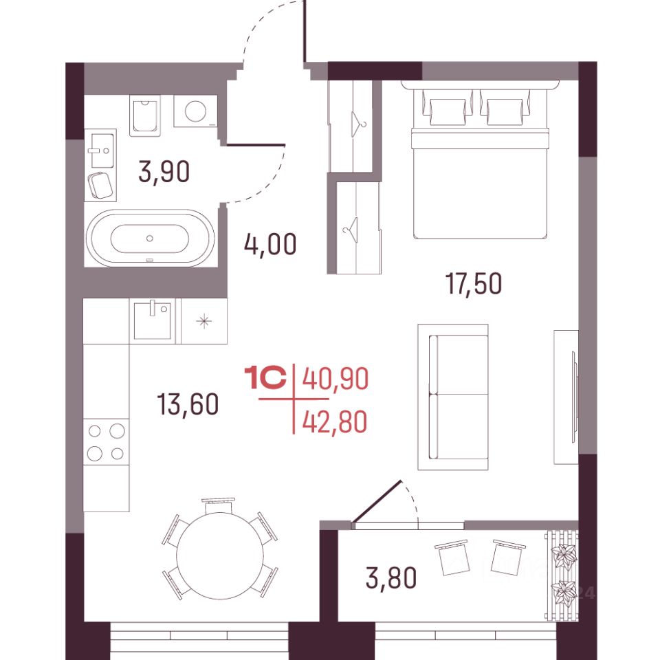 Студия (смарт 1к квартира) правильной квадратной формы с дизайнерской отделкой, есть выход на лоджию.