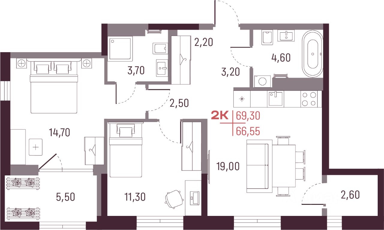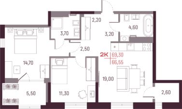 Общая площадь66,55 м²