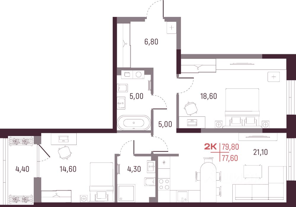 Стоимость с учетом акции "Отделка за 12 000 м²". Не оферта.
