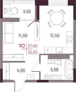 Студия (смарт 1к квартира) свободной планировки с дизайнерской отделкой. Квартира правильной квадратной формы, есть выход на лоджию.