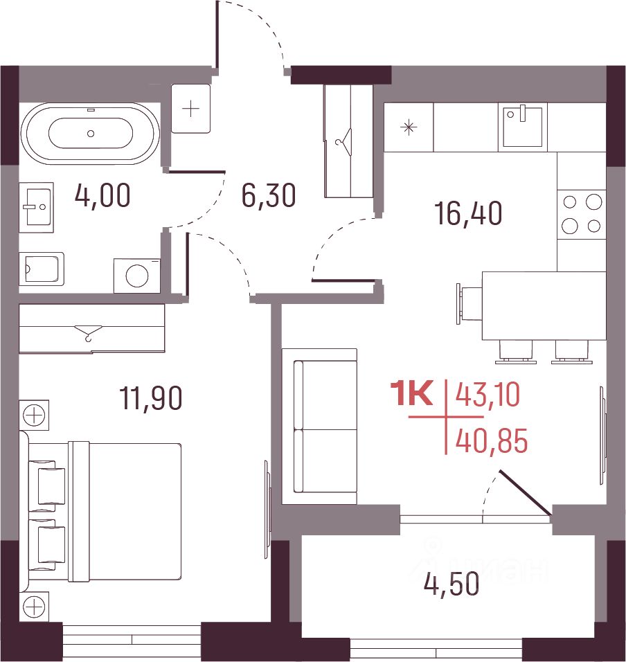 Однокомнатная квартира. Кухня гостиная с выходом на лоджию. Просторная прихожая.